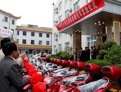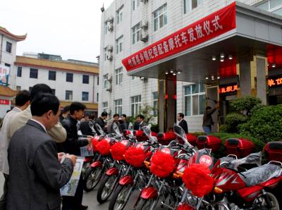 10月15日,竹溪县举行乡(镇)纪委配备摩托车发放仪式。据了解,此次该县拨出10余万元专款为15个乡镇纪委配备摩托车,有效解决了山区乡镇交通不便导致乡镇纪检干部行路难。今年元月,该县还拨出18万元专款为全县15个乡(镇)纪委配备了电脑、打印机、摄像机、照相机、录音笔、档案柜等办公办案设备,改善了乡镇纪委办公条件,提高了办案效率。(本报视界网签约摄影师颜义众通讯员孙敏)