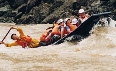 湖北恩施清江闯滩漂流景区素来有着”中国特色旅游三十佳”、”中国最美的大江漂流”等美誉,卓然独立于中国众多的江河漂流,景区以惊险刺激的险滩漂流、秀丽的清江峡谷风光、游客亲水游泳嬉戏的强烈参与性以及原生态的恩施山歌民俗等独特魅力享誉海内外。原清江闯滩漂流全程为38.5公里,从启漂码头乘橡皮舟飘然而下,一条橡皮舟最多可乘8名游客,每条橡皮舟上配有两名船工,船工不仅负责驾船和保障游客的安全,个个都是山歌王,一路上,清江上号子山歌荡气回肠,一路观景听歌,如痴如醉,游客可惬然享受原生态的视听盛宴。清江险滩落差可达4米,沿途要闯过卡门、虎三跳等险滩,在碧浪中跌宕起伏,与浪共舞,感受”玩就玩个心跳”,十分惊险刺激。清江峡谷幽深,两岸风景迤俪,倒凤岩、骆驼峰美妙绝仑,置身其中,完全远离尘世喧嚣,恍然回归远古。在蜿蜒峡谷中,众多桥梁蔚为壮观,形成了一道道独特的风景。