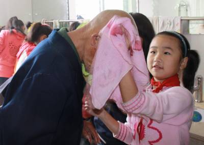 走进福利院践行”忠孝雅诚”(图文)竹山县宝丰镇中心学校朱本双电话:13177481456邮编:442213电子信箱:zsbfzbs@126.com10月19日上午,竹山县宝丰镇施洋小学组织师生到该镇中心福利院,开展打扫卫生、整理内务、慰问演出等活动,为五保老人送去了的真切祝福和诚挚关爱,用自己的实际行动践行”忠孝雅诚”。”走进福利院”是施洋小学开设的德育教育实践课题,多年来学校一直把宝丰镇中心福利院作为德育教育基地,定期组织开展扎实有效的德育实践活动,着力提高师生的社会主义荣辱观和思想道德素质。图为部分活动掠影。
