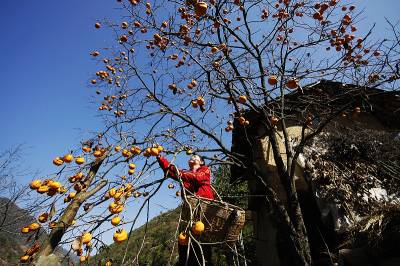 满天”金”果10月19日,竹山县双台乡花园村村民何永娥在摘甜柿。今年该县的柿子喜获丰收,产量达到了2000万公斤,可为农民增加收入2000万元。(本报视界网章磊摄)地址:竹山县交通局章磊电话:15972574118