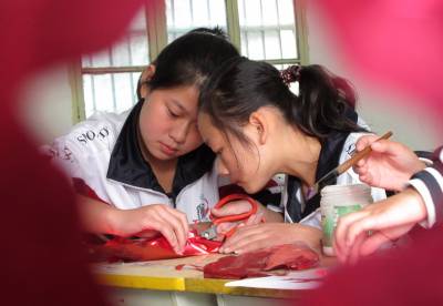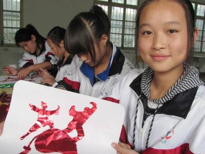 10月19日下午,十堰市郧县茶店中学学生在手工课上剪《武当武术》标志性图案。自第四届世界传统武术节于16日在十堰市召开以来,该校学生对武当武术也产生了浓厚兴趣,对武当文化有了深入了解,在手工课上同学们通过剪纸表达对武术节的关注,对武术盛会的祝贺。(十堰市郧县新闻宣传中心曹忠宏曹相聪摄影报道邮编442500电话13294212877)