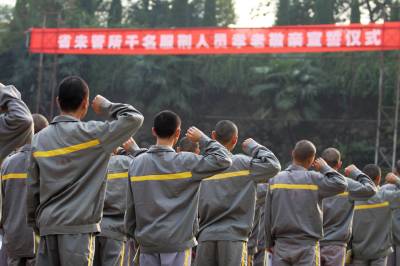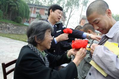 2010年10月19日下午,湖北武汉,”我宣布,现在开始。全体服刑人员起立,集体诵读《弟子规》原文。弟子规,圣人训,开始。”湖北省未成年犯管教所教育科副科长胡旭华话音刚落,操场上就传来了震耳欲聋的诵读声:父母呼应勿缓父母命行勿懒……道人善即是善人知之愈思勉……据了解,湖北省未成年犯管教所自2009年年底开展”感恩亲人促改造”孝文化教育活动以来,除继续对服刑人员进行社会主义核心价值体系教育外,还开展了”学习《弟子规》争做孝老敬亲服刑人员”专题教育活动。在当日的仪式上,该所表彰百名孝老敬亲服刑人员,首届感动荆楚”十大杰出老人”郑美文等为他们戴上大红花;千名服刑人员还举起右手庄严地进行了孝老敬亲集体宣誓。湖北省未成年犯管教所所长吴光耀说,监狱通过引导服刑人员学习《弟子规》等优秀传统文化经典书籍,倡导真、善、美,让中华传统道德文化所蕴涵的深层次道理、情感、智慧触及服刑人员的灵魂、思想和信念,可以提升服刑人员的人文素养,形成了文明、守法,健康向上的监狱文化氛围。
