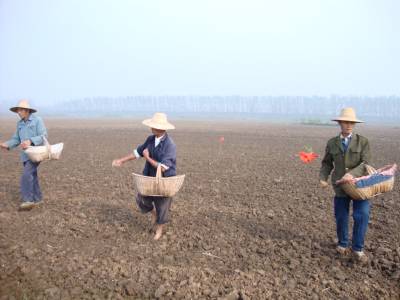 图片报道:汉川掀起小麦播种高潮10月20日上午,汉川市麻河镇祠堂村农民刘图中正抓住天气晴好的有利时机,和自家弟兄们一起播种小麦。据悉,近年来随着国家良种补贴、农资综合补贴等一系列惠农政策的实施,使广大农民种粮积极性空前高涨,小麦播种面积连年增加,今年该镇小麦种植面积将达8000亩以上。签约摄影师邹开建摄通联:汉川市麻河镇党政办公室电话:13197382491