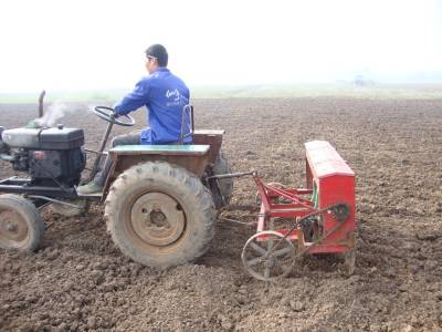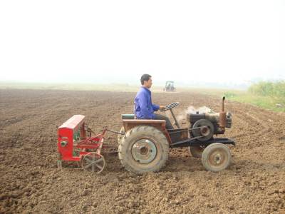 图片报道:农机闹秋播日前,正是小麦播种最佳时期。为更好地服务农时,引导农民适时播种,汉川市麻河镇农业服务中心组织10余台播种机开展小麦播种,这种播种机既提高了麦播质量,又加快了麦播进度。截止目前,该镇已播种小麦5000多亩。图为10月20日祠堂村村民刘学中正在机播小麦的情景。签约摄影师邹开建摄通联:汉川市麻河镇党政办公室电话:13197382491
