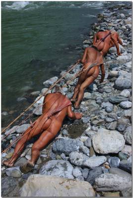 湖北巴东神农溪的裸体拉纤很早就有。以前我没有深入了解,以为纤夫裸体拉纤是因为穷,所以才裸体拉纤?”裸体纤夫”作为当地土家文化的存在不知道经历了多少世纪?到现在几乎消失已尽了。目前神农溪的河道也自然向上游延伸了几十公里,目前在沿渡河镇又有一条风景很美的峡谷溪流再现神农溪往日美丽,源头就是有”小神农架”之称的原始森林——”神农溪自然保护区”。
