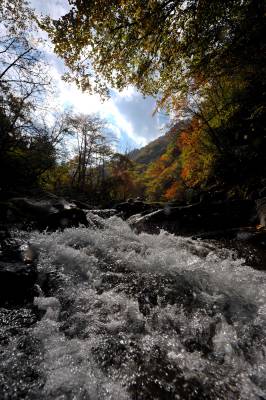 10月19日拍摄的神农架秋色。深秋的神农架,叮咚的溪水、漫山红叶,构建一幅美丽的深秋画卷。本报视界网宋文摄