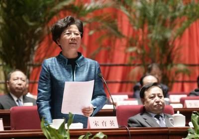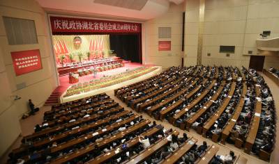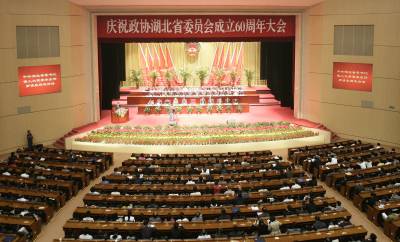 2010年10月21日,庆祝政协湖北省委员会成立60周年大会在武昌洪山礼堂举行,省政协主席宋育英主持大会,省委书记罗清泉讲话。(记者柯皓摄)