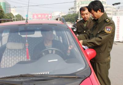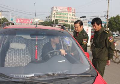 为打击”黑车”非法营运的猖獗势头,连日来,孝昌县运管所组织执法人员在该县开展打击黑车专项整治行动。几个检查行动小组分别在一些路段设卡,对过往的自备车逐一进行检查,严厉打击各类自备车非法营运行为,规范出租车营运市场,维护孝昌交通秩序。图为21日下午,一检查行动小组正在对一辆自备车进行检查。宋俊初摄