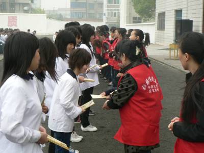 10月20日上午,钟祥市胡集高中综合运动场上,30余名爱心妈妈将3000余册《弟子规》发放到学生手中,该校将利用这些读本深入开展学生道德教育。