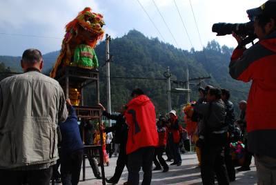 百余名摄影大师聚焦利川10月22日,利川市毛坝乡五二村村民精彩的舞狮表演,吸引了来自全国各地摄影大师。据介绍,由中国摄影家协会、中国摄影报社组织了100余名摄影大师走进利川进行为期4天的采风,用镜头推介利川。(视界网秦卫飞)