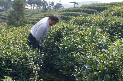 红安县”茗宿”老君眉茶厂开展秋季管理10月5日,湖北省红安县国营”茗宿”老君眉茶厂开展秋季茶园管理,老君眉茶厂以生产高山无公害生态有机茶而著称,茶厂现有1254亩茶园,2000年荣获第二届国际名茶评比金奖等多项殊荣,天然的高山气候,独特的地理环境,其丛林里生长的野生草青茶叶,更是难得的上乘保健佳品。图为茶场里的工人在茶园里进行中耕除草管理。湖北省红安县城投公司袁锋江明手机:13607253832邮编:438400