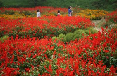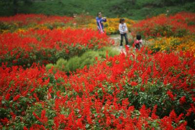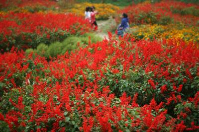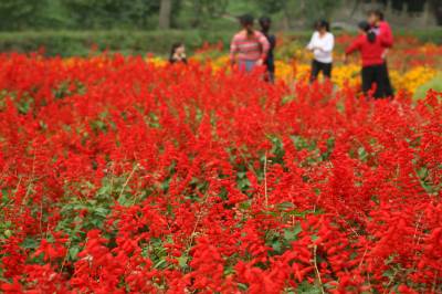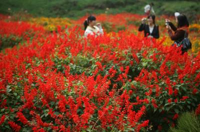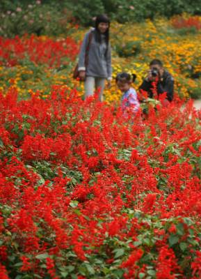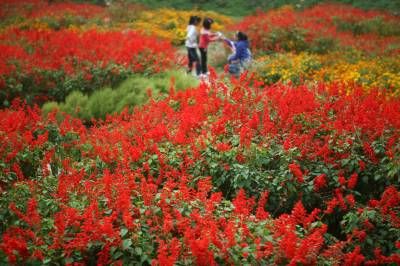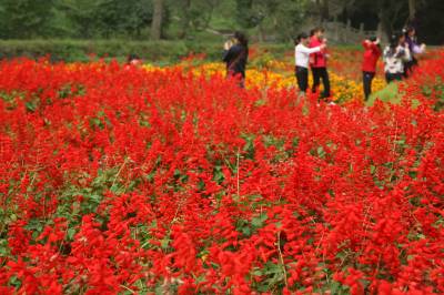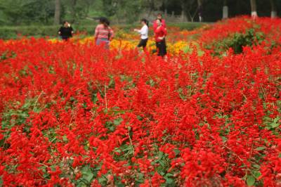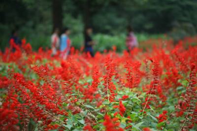 10月23日,在湖北襄樊市郊古隆中风景区,市民被眼前火红的秋色深深吸引。当日,是二十四节气中的”霜降”,湖北省襄樊市天高云淡,许多市民走进景点或公园,尽情享受晚秋美景。