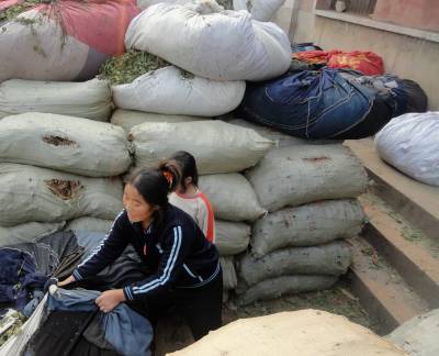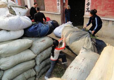 10月23日下午,郧县刘洞镇村民正在卖桑叶。随着秋蚕期已近尾声,村民们将剩余的桑叶晒干作为药材卖。据收购人员介绍,干桑叶的收购价为每斤1.2元。近年来刘洞镇坚持将产业结构调整与改善生态环境有机结合起来,形成”山上木瓜,山下桑”的产业格局,两千余亩的胡桑林已成为农民们的”摇钱树”。(郧县刘洞镇九年一贯制学校高超/摄邮编442525)