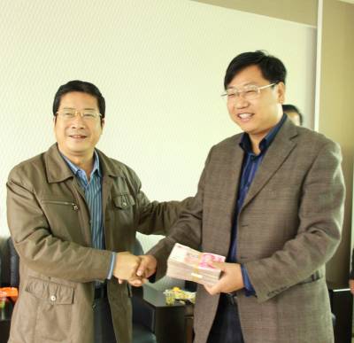 郧阳师专倾情帮扶竹山二中(图文)竹山县宝丰镇中心学校朱本双电话:13177481456邮编:442213电子信箱:zsbfzbs@126.com10月24日,郧阳师专党委书记杨郧生、副校长潘世东教授在竹山县委常委、宣传部长、统战部长方孝春,竹山县委常委、副县长刘宇飞,县教育局局长李大智的陪同下带领郧阳师专财务处、招生就业处负责人,深入竹山二中就长期对口帮扶工作进行调研,并送来帮扶资金50000元。在实地查看校园建设,听取该校校长储照安的工作汇报后,杨郧生书记一行对竹山二中近年来取得的各项成绩给予了充分肯定,并就下一步的帮扶工作提出了指导性意见,表示将对二中在校园建设、师资培训、科研项目、校园文化建设等方面给予长期帮扶。方孝春部长代表县委县政府对杨书记一行表示欢迎,要求竹山二中要抓住郧阳师专对口帮扶的有利时机,不断完善学校各项软硬件设施,强化教师队伍培训,进一步提高办学水平,加快市级示范高中创建步伐。据悉,郧阳师专和竹山二中有着长期的交流,尤其是近3年来,郧阳师专先后投入资金近20万元帮助竹山二中建成了校园宽带网、视频电子监控系统、多媒体教室等,为该校发展做出了积极努力。图为郧阳师专党委书记杨郧生(左)把帮扶资金送到竹山二中校长储照安手中。