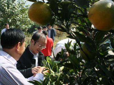 10月24日上午,新任南漳县委副书记、代县长黄其洲在巡检峡口万亩柑橘基地察看柑橘长势。今年该镇成立”桔农发柑橘专业合作社”,网络1760户农户,依托资源优势,采取统一收购、统一分选打蜡、统一外包装的办法,通过加工转化促增值,预计可产柑桔7万吨,仅此一项可使全镇农民增收630万元。本报通讯员张兴江/摄地址:南漳县新闻信息中心(441500)