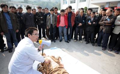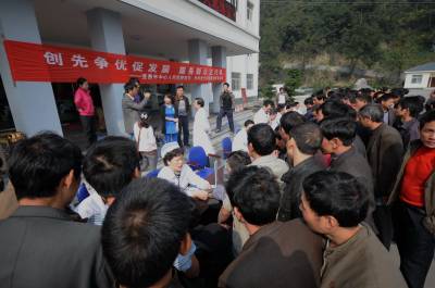 10月24日,宜昌市中心人民医院外科、机关等支部的20余名党员组成医疗服务队,来到远安县张家滩煤矿有限公司,开展以”创先争优促发展,服务群众正行风”为主题的系列服务活动。据悉,该煤炭公司偏远山区,离县城距离远,矿工看病就诊很不方便。医疗服务队在矿区为矿工们检查身体,赠送药品,讲授徒手心肺复苏、现场止血法等自救互救知识,帮助矿工降低工伤事故中的身体损害。