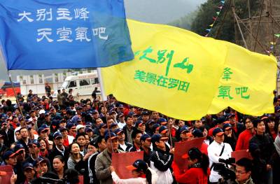 大别山放歌迎宾客昨日,罗田县天堂寨景区彩旗猎猎,黄冈大别山旅游节罗田分会场拉开序幕,近千名户外运动爱好者举行了”大别主峰,天然氧吧”主题登山活动。同时,《大别山放歌》文艺演出、旅游商品展示、旅游招商等一系列活动全面展开。图1:千名户外运动爱好者到大别主峰享受天然氧吧。图2:大别山放歌迎宾客。(记者曲河本报视界网林永迪摄)