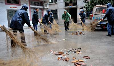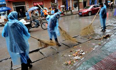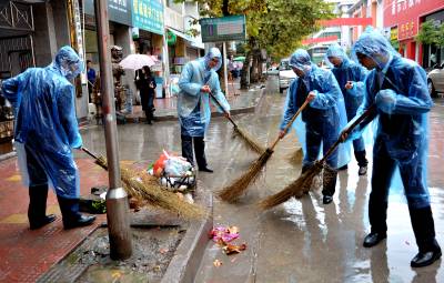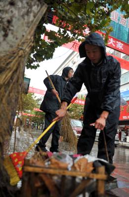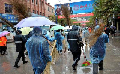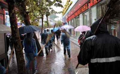 10月26日,宣恩县千名机关干部冒雨走上街头,参与”我当一日环卫工人”活动。当日是湖北省第十三个环卫工人节。宣恩县1000余名党政干部走上街头,与环卫工人在劳动一线过节,在劳动中体验环卫工人工作艰辛,并向市民开展环卫宣传。本报视界网宋文、田丹摄