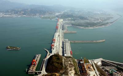 26日9时,三峡上游水位175米,下游水位为65.28米,上下游水位落差达到109.72米。(记者杨平摄)