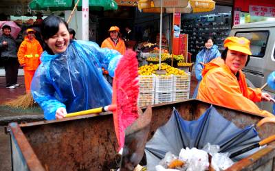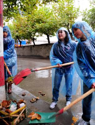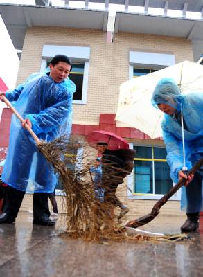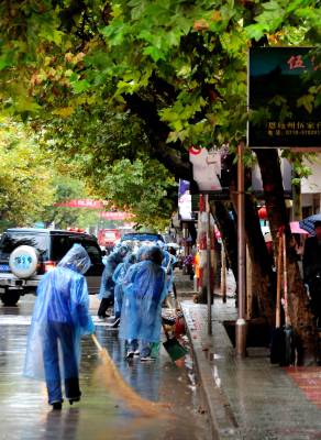 26日,宣恩县近千名”义工”冒雨打扫街道卫生。当天,是湖北省第十三个”环卫工人节”。一大早,宣恩县机关干部职工、学生、市民组成的近千名”义工”就来到城区各道路,冒雨打扫街道卫生,清扫垃圾,争做”城市美容师”,让辛苦工作的环卫工人暂时休息。