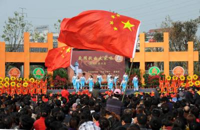 > (请签发至明日一版)图为黄冈大别山旅游节开幕式爱国歌曲大家唱现场