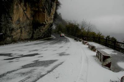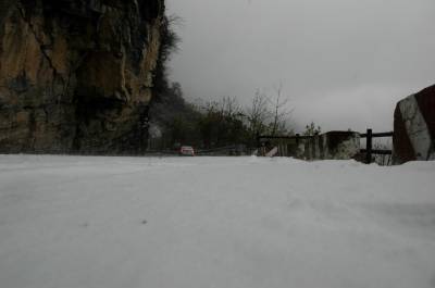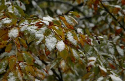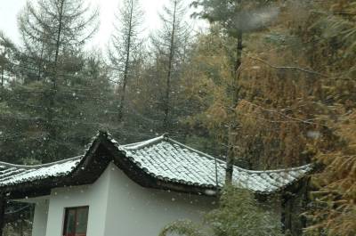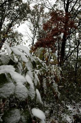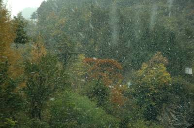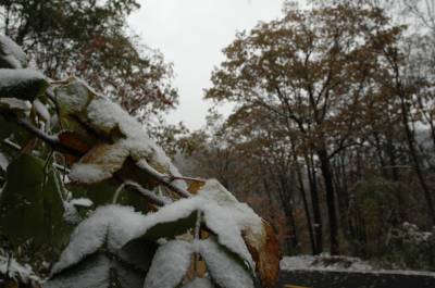 26日,神农架普降深秋的第一场雪。海拔1000米以上的山上,雪花飞扬,给七彩斑斓的秋叶上铺上了薄薄的白雪。