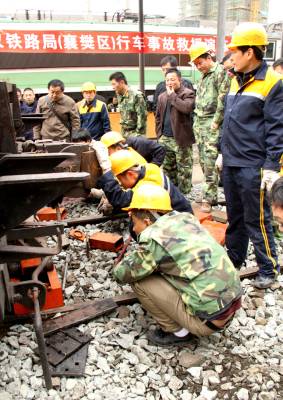 图片《备战冬运救援演练忙》图片《备战冬运演练忙》10月27日武铁襄樊北机务段正在开展摸拟事故救援演练。武铁计划利用冬运前的空闲时间,分六期对全局主要行车岗位等35支沿线站区救援队进行一次救援理论知识的轮训学习和事故车辆起复的实战演练,以增强职工的事故应急救援能力,确保冬运安全。襄樊北机务段熊德明湖北襄樊市米庄襄樊北机务段电话13797581610)