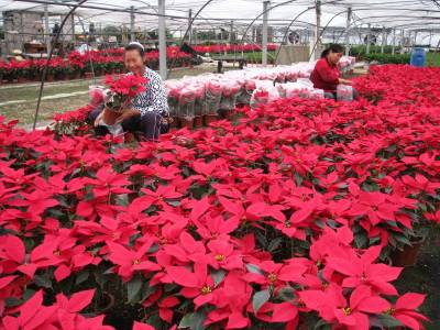 ”一品红”,成为市民选择秋冬盆景花卉的最爱之一。云梦年产”一品红”盆景约10万盆,眼下”一品红”产品源源不断俏销孝感、武汉、长沙等大中城市。云梦”一品红”,红红火火艳荆楚!