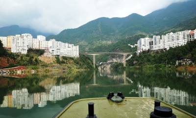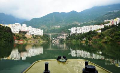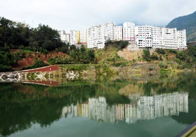 三峡库区巴东县处处呈现平湖美景(图)27日,巴东县沿渡河集镇、山峦呈现的倒影,犹如海市蜃楼般漂亮。据了解,随着三峡库区试验性蓄水水位稳定在175米高程,高峡出平湖美景随处可见。(本报视界网梁勇摄)