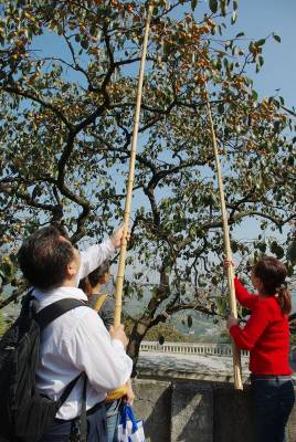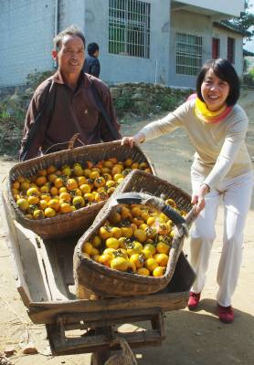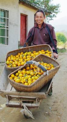 錾字石甜柿又熟了罗田县三里畈錾字石甜柿以香甜自然脱涩而驰名中外,今年又到丰收成熟季节,吸引了大批游客摄影者前来观光采风,经历了看柿、摘柿、运柿、品柿、吃柿全过程,既推介了罗田甜柿珍贵品牌,又为当地拓展了生态旅游项目,为柿农增收。据该村熊书记介绍:今年虽是甜柿生产小年,但甜柿还是熟了,全村示范总面积过3000亩,可生产150万公斤,加上旅游综合收入,可为柿农实现收入800多万元以上。诗人游錾字石柿乡以后欣喜写道:錾字石柿产天下珍,自然脱涩世皆闻。谷熟豚肥深秋日,甜果迷醉远游人。一组好片子哟---图一、靓女爱甜柿,心比蜜还甜。图二、游客分享柿农夹甜柿的欢乐。图三、大伯喜推狗头车送甜柿销售。图四、大伯推狗头车售甜柿,游客小妹来帮忙。图五,老奶奶年寿柿丰,赶赛柿子片。通讯地址:罗田县人大办公室叶建辉18995711817