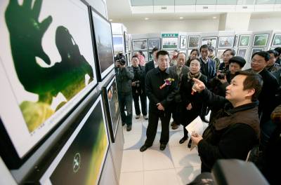 全国环保摄影展在京揭幕本报记者进京受奖昨(28)日,2010年”杜邦杯”全国环保摄影展在京揭幕。本届摄影展以生物多样性保护为主题,2000余幅作品参评。本报记者田悦的作品《水中大”熊猫”》获专业组特等奖,柯皓作品《水下草原》获专业组二等奖,另有本报视界网两名签约摄影师分获二、三等奖。图为田悦向国家环保部副部长潘岳介绍作品拍摄情况。(记者柯皓摄)