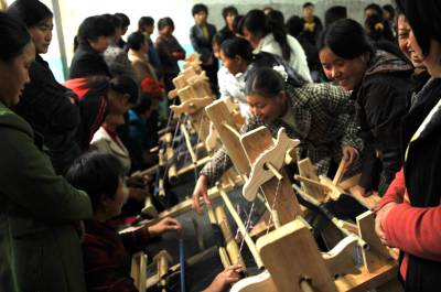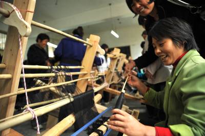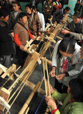 10月29日,恩施市屯堡乡400女工正在现场学习土家织锦。年底将近,恩施州土家山寨织锦工艺有限公司为了解决用工荒问题,特组织了此次培训活动,学会织锦的女工到时候可以到该公司上班,也可在家生产织锦,然后销售到该公司。据了解,土家织锦在土家语中又被称为”西兰卡普”,该产品已经被纳入”中国国家非物质文化遗产”名录。