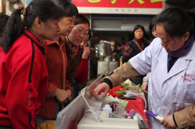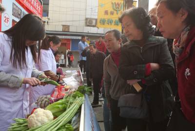 洪山广埠屯菜场现场抽检让市民吃放心菜怎样消除蔬菜残毒?如何识别购买无公害蔬菜?昨日上午9时,广埠屯菜场入口处,洪山区动物防疫检疫站和农产品检测中心的工作人员在此发放宣传单,向市民普及食品安全知识,并现场抽查了生菜、豆角、茄子等10余种蔬菜的农药残留量,结果全部符合标准。现场吸引了很多买菜市民围观,纷纷索要宣传单,并就自己买菜时发现的问题上前咨询。华师社区69岁的严金荣婆婆提着刚买的豆角,要求现场检测,十多分钟后,得知农药残留没有超标,她高兴的合不拢嘴:”今天活动真好,现场检测蔬菜让我们吃的放心,又教会我们怎样识别选购,这些都是与我们生活息息相关的事情,希望以后多开展一些。”