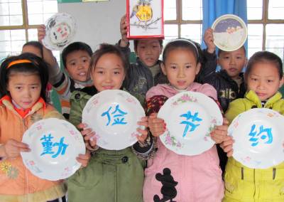 2010年10月29日上午,湖北郧县城关镇第一小学的学生利用盘子进行手工创作,以此提醒自己勤俭节约从”盘中餐”做起。在10月31日”世界勤俭日”到来之际,该校开展了以”节约与创造”为主题的教育活动,引导学生们利用饮料瓶、包装盒等废旧物品制成手工艺品,培养勤俭节约意识。
