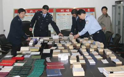 随州破获一起涉案金额巨大假发票案10月31日,随州市公安局经侦支队与市地税稽查局人员在公议室对破获涉案假发票进行清点。近日,湖北省随州市公安局经侦支队与市地税局稽查局联手,经过20多天侦破,捣毁一个销售假发票窝点,现场缴获各类假发票51472份,种类多达数十个,涵盖广东、黑龙江等地,多为饮食服务业假发票,案值2399余万元。目前,案件审理正在紧张进行。本报视界网、随州日报社杨文明摄