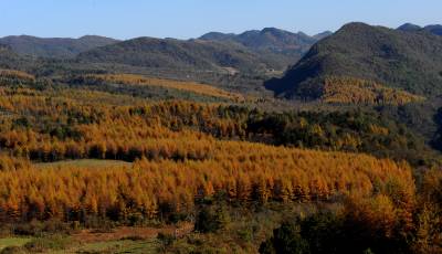 10月30日拍摄于宣恩县椿木营乡的10万亩日本落叶松林的深秋美景。恩施素有”鄂西林海”之美称,随着退耕还林、天然林保护等林业重点工程的实施,当地森林综合覆盖率已达68%。本报视界网宋文摄