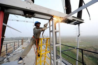 从今年开始,孝感供电公司计划用两年时间完成孝感主电网7座220千伏变电站的综合自动化改造,以进一步提高电网安全运行水平和供电能力,更好地服务于地方经济社会发展。图为:近日,供电员工正在220千伏姚家冲变电站综合改造现场紧张施工。(肖强)