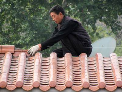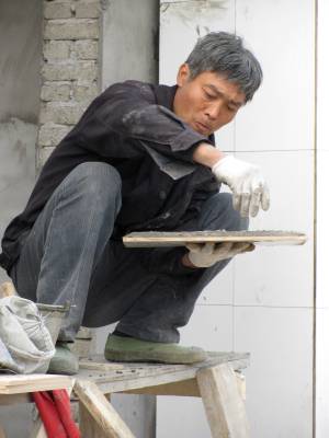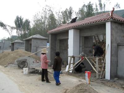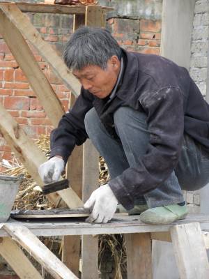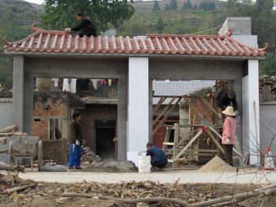 10月31日上午,郧县谭山镇腰庄村村民正在为院落围墙大门贴瓷砖、装琉璃瓦。该村在7月24日特大洪灾中,215户房屋被冲毁,为加快房屋重建进度,确保村民早日搬进新居”温暖过冬”,该县从资金、物资、技术等方面对该村给予全力支持和帮助,灾区房屋重建正加快推进。