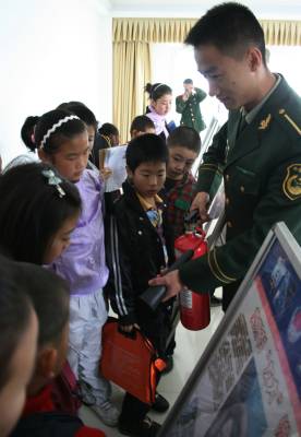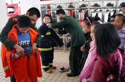 消防知识进学堂10月31日,鹤峰消防中队的战士为前来采风的小桔灯作文培训班的学生演示消防服是如何着装的(图一)。当天,该县小桔灯作文培训班的学生在老师带领下来到消防中队,学习、了解消防知识(图二、三、四)。通过参观官兵的内务管理(图五),观看消防器械的演练(图六),同学们不仅获取了写作素材,拓宽了知识面,还增强了自我的防护能力。采访手记:防灾减灾贵在”防”字。面对灾难的不可预测性,我们必须防患于未然。让青少年知道如何预防和应对火警、火灾,具备一定的消防安全意识与能力,不仅能提高他们的自救自护能力,而且也是一个合格公民应具备的基本素质。(向红艳)