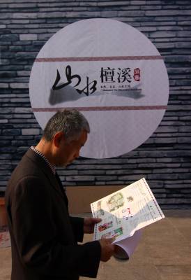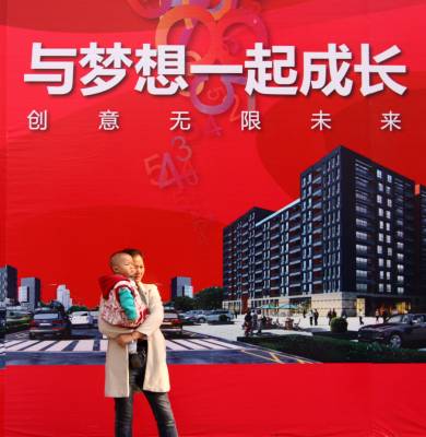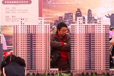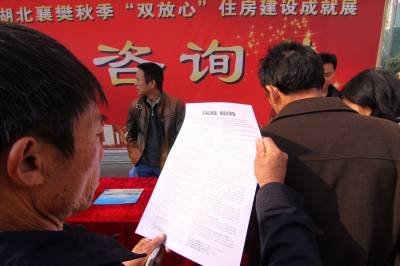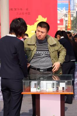 2010年10月31日,湖北襄樊,一对母子在房展会上关注房地产行情。2010年湖北襄樊秋季”双放心”住房建设成就展自29日至31日在该市人民广场举行,吸引了众多市民前来观看、咨询有关房地产项目和政策。本展房展以”宜居城市和谐地产”为主题,通过房地产项目的展示,刺激消费者的消费需求,活跃市场,引导襄樊房地产业持续、健康、有序发展。
