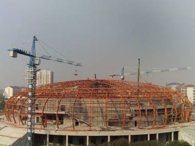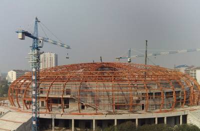 武穴市全民健身中心体育馆展露雄姿10月31日,正在加紧建设之中的武穴市全民健身中心体育馆展露雄姿。据了解,由武穴市财政投资1亿元,建设该市有史以来投入规模最大的民生项目——全民健身中心工程。目前,建设者们抢晴天战雨天,不休节假日,加快体育馆、标准田径场等主场馆的建设进度,确保工程如期竣工并投入使用,确保黄冈市三运会明年在武穴市顺利成功举行。(本报视界网郭占军摄)