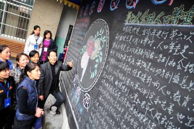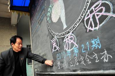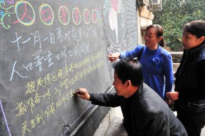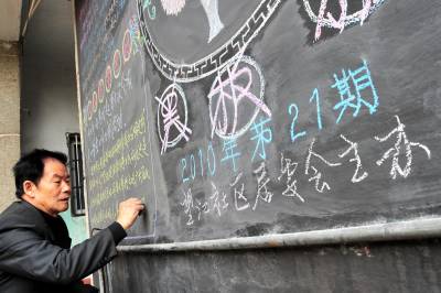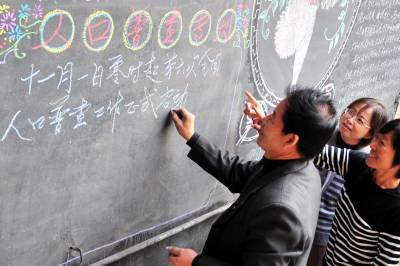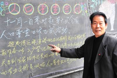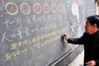 2010年11月1日,湖北省宜昌市夷陵区小溪塔街道办事处望江社区老人王玉春为配合第六次全国人口普查正式入户登记工作,在社区办了一期人口普查专栏黑板报,这是王玉春老人10年来义务为社区办的第300期黑板报。 王玉春1946年出生在北方一个小镇,从小学三年级起,他就是学校宣传栏的小画家,初中文化成绩排列前三名,绘画作品在全国拿过奖,初中毕业被保送到中央美术学院学习,那时他才15岁。 由于家庭困难,王玉春在美术学院没上完参加招工。他一边参加劳动,一边为工人画画,还带了许多徒弟,义务传授。后来单位搬迁到宜昌,王玉春也定居到了宜昌望江社区。 10年前,王玉春退休,宜昌市夷陵区小溪塔街办望江社区的负责人请他办一期黑板报,王玉春二话没说答应了。由于黑板报宣传出了效果,王玉春办了一期又一期,就成了望江社区的义务办报员。自担任义务办报员以来,王玉春都要找来当地政府的时政材料,同时走访居民,了解民情,将国家大事要事和群众的呼声愿望通过黑板报表达出来。 10年来,王玉春为望江社区义务办黑板报达到300期,每期精彩。有人问王老为什么不办个绘画培训班赚点钱?王玉春说:退休了能为社区做点事,感到生活很充实,感觉活得很有价值。本报视界网张国荣摄