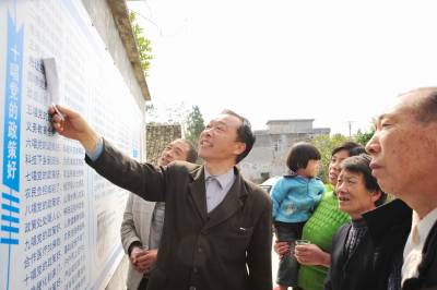 (组图)山里农民自办”政策宣传大院”本报视界网刘波、黄皇英11月1日,建始县业州镇罗家坝村五组农民老郭正向前来的镇干部讨教如何利用通俗易懂的形式把党的十七届五中全会精神宣传村民中(图一)。”老郭”是村民对他的尊称,他的真名叫郭荣华,今年53岁。自2005年出任5组中心户长后,利用自家房屋地处村中心地带有利条件,打围墙,建起政策宣传长廊,腾出一间房屋,建起廉政文化书屋,并通过自编三句半、顺口溜、问答解读等通俗易懂方式,以办墙报的方式及时将集体林改、税费改革等党的好政策及时宣传出去(图二),并不失时机利用过红事白事向村民宣传党的好政策,短短5年时间,他自家政策宣传长廊共办30余期党的各项政策宣传栏(图四),他家成了村民常常聚到一块讨教政策的好地方(图五),无不被当地村民成为”政策宣传大院”。采访手记:农民老郭利用通俗易懂的方式向村民宣传党的新政策,赞美农村新变化,劝诫人们走正道,倡导农村新风尚,自”政策宣传大院”成以来,组里扯皮拉筋的没了,无一起治安刑事案件发生,邻里团结,乡凤文明,无不成为培育新型农民的”新课堂”,值得倡导!建始新闻中心刘波联系电话13032794298