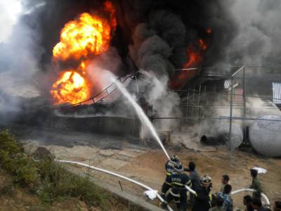 > 当阳一油厂突发大火 消防官兵奋力扑救