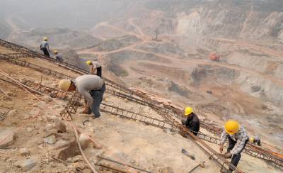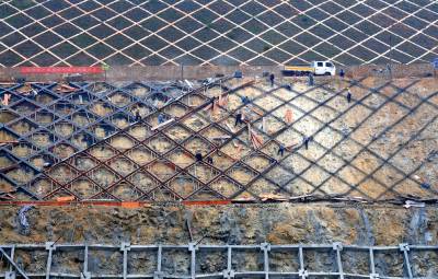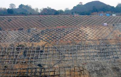 大冶铜禄山矿山治理进展顺利11月2日,施工人员正在大冶市铜禄山铜铁矿矿山边坡格构上轧钢筋、浇注水泥。铜禄山古矿冶遗址就在该矿山边坡上,由于开矿,古矿冶遗址出现裂纹。大冶市国土资源局于2010年4月3日开始对30000平方米的矿山边坡采取格构护坡治理,目前已完成总工程量的百分之八十六。据悉,整个工程将于今年底完工。黄石市黄石日报摄影部邱孝威摄电话:13807232603邮编:435002