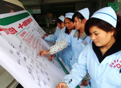 11月2日,宣恩县高罗乡卫生院医护人员正在《政风行风、医德医风服务承诺书》上郑重签名。连日来,宣恩县卫生局以争先创优及民主评议政风行风工作为契机,树立卫生行业行风尚,推进医德医风建设。在全县医疗机构开展医德医风宣誓签名活动,全县1000余名医护人员公开宣誓并向签名承诺:谨遵”全心全意为人民服务”,恪守医德,文明执业,自觉接受社会各界监督,维护医学的圣洁和尊严。视界网签约摄影师李以国摄