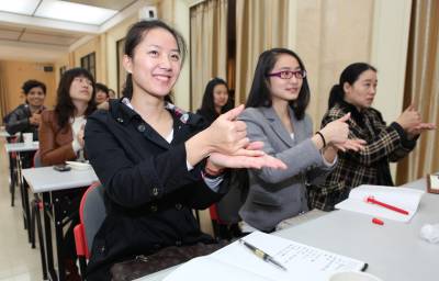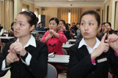 ”以前碰到聋哑顾客,只能靠纸笔沟通。今天学到的常用手语,感觉非常实用,以后与残疾朋友沟通更方便了。”昨天上午,洪山辖区内星级酒店、旅游景点的管理人员和前台服务人员,在街道口东风宾馆会议室上了一堂生动的手语课。武汉市聋哑学校的姬振红老师,根据旅游业务的服务需求”量身定制”培训内容,主要涉及酒店和旅游行业的日常对话。东风宾馆餐厅主管冷娟表示:”手语学起来很优美,在工作中也用得到,以后还想多参加这样的培训。”据悉,参加培训的学员们,回去后将再做”老师”,向同事们传授简单的手语。此次活动由洪山区民族宗教旅游局主办,该局相关负责人介绍,”旅游行业一直有外语培训,但缺乏手语培训,我们希望通过对旅游服务行业一线人员的手语培训,为特殊人群带来更好的服务,该培训班将长期开展下去。”