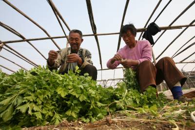 11月4日,仙桃市干河办事处小南村农民赵复坤和老伴在田间整理刚刚收获的白芹菜,准备运往农贸大市场。干河办事处利用地处城郊的优势,在肖台、小南、袁市、姚台等村建立蔬菜基地,总面积达1.2万亩,大力发展反季节、无公害蔬菜,农民亩平收入过万元。吴三红摄