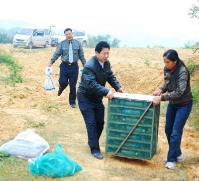 11月4日,在现场群众、记者和有关工作人员的见证下,黄冈市林业局、黄冈市森林公安局将11月3日晚至4日凌晨,在沪蓉高速巡警的协助下进行的为保证亚运期间野生动物的安全,组织的联合执法行动中当场查获的各类野生动物48箱放归大自然,极大程度减少了野生动物的死亡。据黄冈市林业局野生动物保护站站长冯展翔介绍,此次联合行动中缴获的全部都是省级和国家级”三有”(有益、有科研价值、有经济价值)的野生动物,此次活动的开展,不仅打击了非法驯养、经营、运输野生动物的行为,同时也是野生动物的驯养、经营、运输更加规范化,合法化,更进一步保障野生动物的安全生长。图1:对即将放归大自然的野生动物逐一进行登记。图3:放归现场。(湖北省武穴市林业局干俊冯怡红摄影报道邮编435400电话:13707253878)