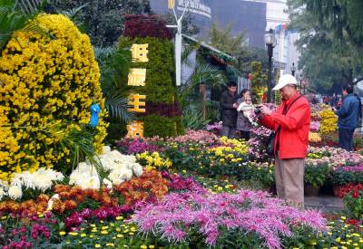 江汉区第23届菊花展览,4日下午己全部在北湖街妙三社区范围的西北湖绿化广场前布展完毕,5日迎接社区居民们观赏。西北湖绿化广场前摆放着江汉辖区22个街道单位以"低碳生活和谐社会"为主题的菊花扎景,数十万盆五彩缤纷盛开的菊花,让过往行人流连忘返在菊花的海洋里,陶醉在菊花丛中拍照。